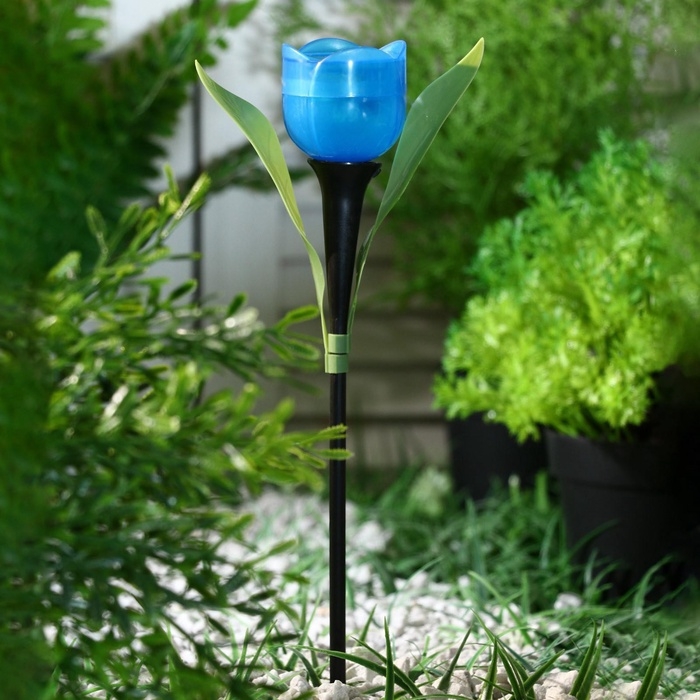 Садовый светильник на солнечной батарее «Тюльпан синий», 5×29×4 см, 1 LED, свечение белое
