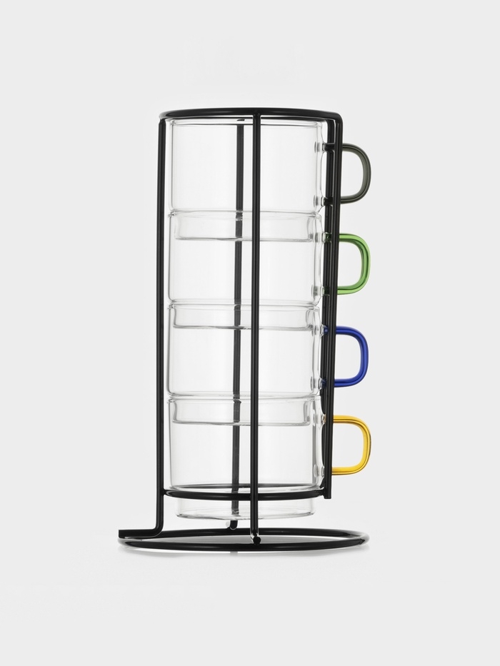 Набор стеклянных кружек на металлической подставке "Квартет", 4 шт, 250 мл
