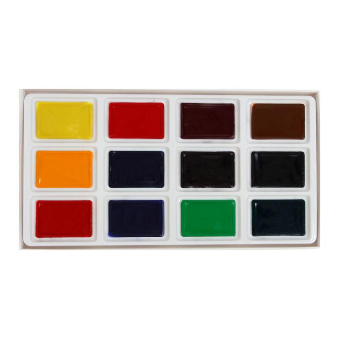 Краски акварельные, в кюветах, с кистью, 12 цветов