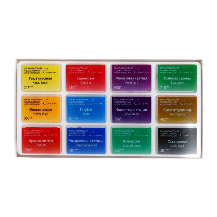Художественные акварельные краски "Сонет" разработаны для начинающих художников, открывающих или совершенствующих свои творческие способности. Изготавливаются по современным рецептурам на основе преимущественно органических пигментов и синтетического связующего. Обладают интенсивностью цвета и прозрачностью. Превосходно смешиваются, размываются и легко берутся на кисть. Палитра набора акварели "Сонет" Ботаника состоит из специально подобранных 12 цветов акварели для написания работ с композициями из растений.
