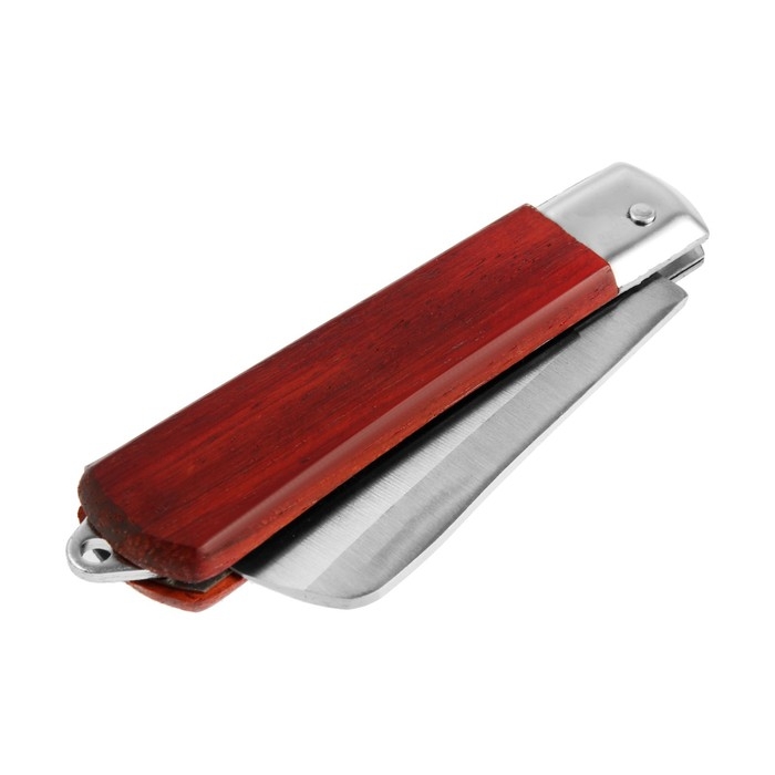 Нож универсальный складной ТУНДРА, деревянная рукоятка, прямое лезвие, нержавеющая сталь