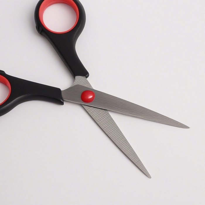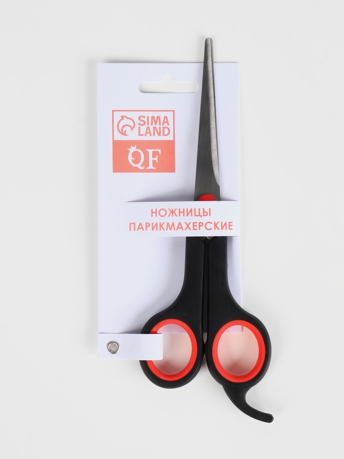 Ножницы парикмахерские с упором, лезвие — 7 см, цвет чёрный/красный