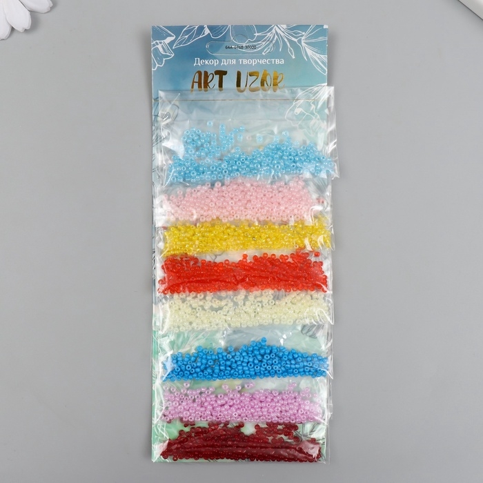 Бисер круглый размер 12/0 "Разноцветный" 8 цветов х 5 грамм 20х8 см