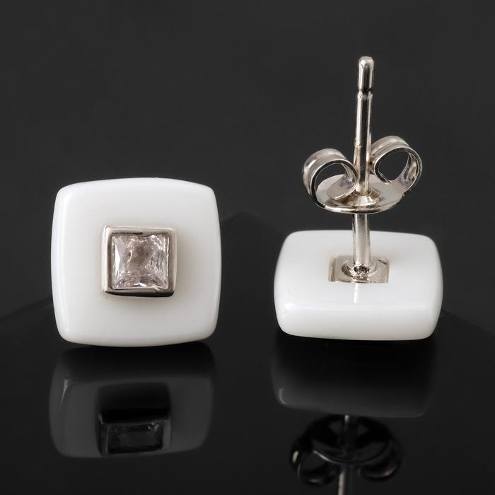Пусеты керамика «Квадрат» малый, белые в серебре