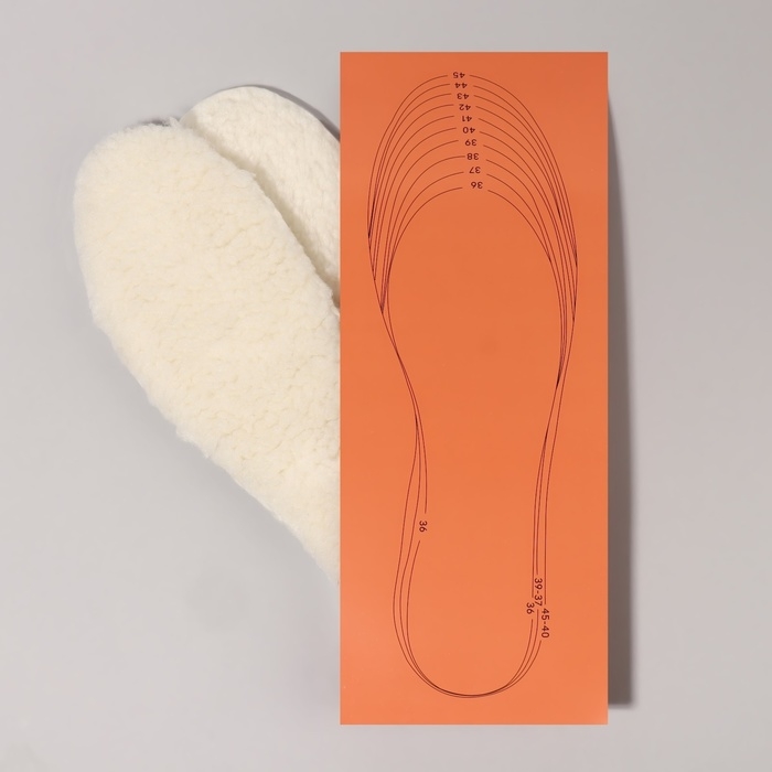 Стельки для обуви, утеплённые, двухслойные, р-р RU до 48 (р-р Пр-ля до 45), 30 см, пара, цвет белый
