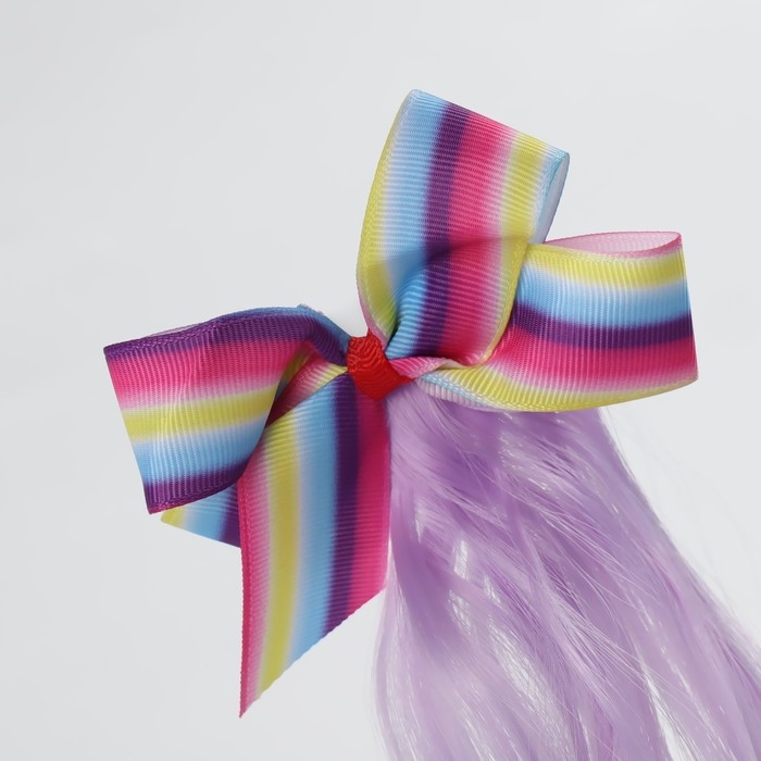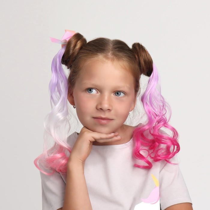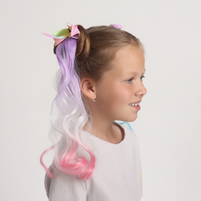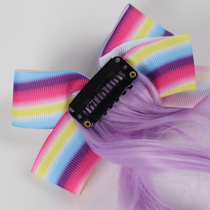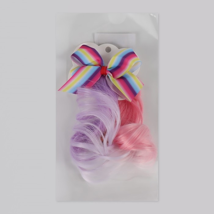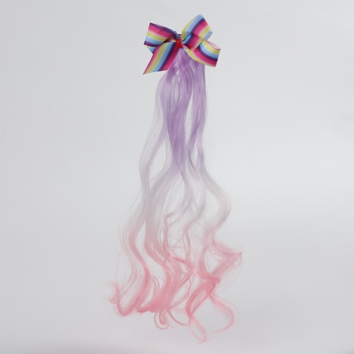 Локон накладной «Бантик», кудрявый волос, на заколке, 32 см, цвет сиреневый/пепельный/розовый