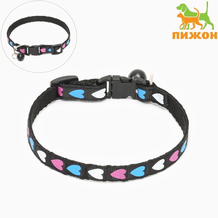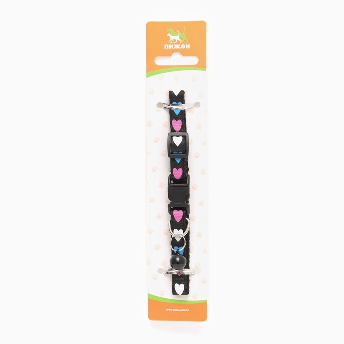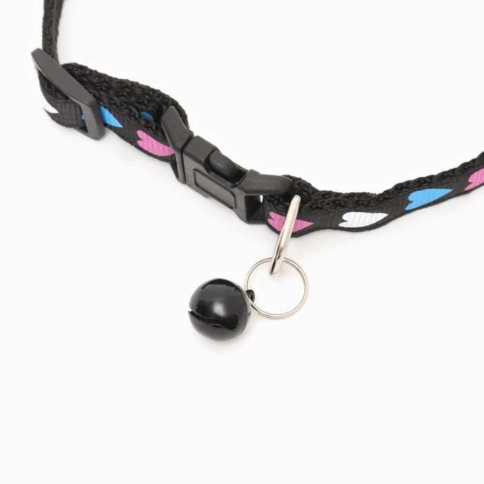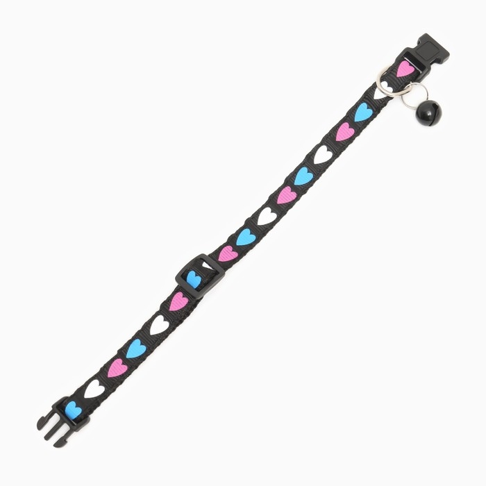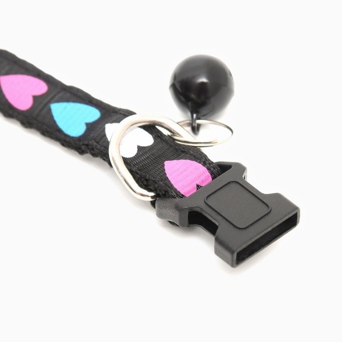 Ошейник двухслойный с фастексом "Сердечки" 30 х 1 см, чёрный