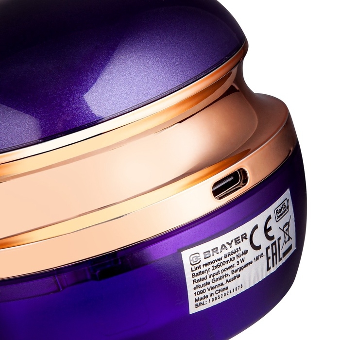 Машинка для удаления катышков BRAYER 5031BR, 3 Вт, TypeC, съёмный резерв для катышков, фиолетовая