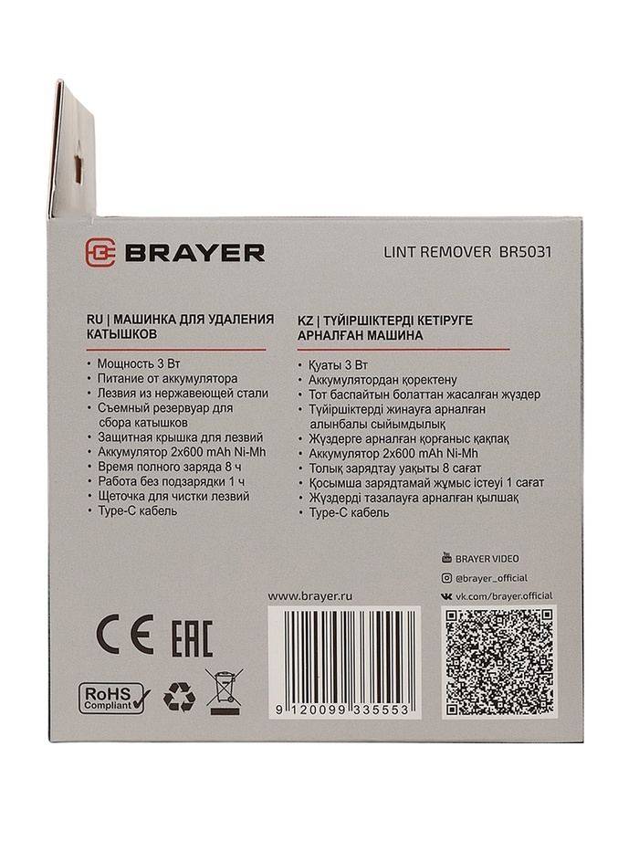 Съемный контейнер для сбора катышков и щетка для чистки лезвий облегчают уход за устройством. Защитная крышка для лезвий обеспечивает безопасность при использовании и хранении. Машинка идеально подходит для удаления катышков с трикотажных, шерстяных и синтетических изделий, возвращая им первоначальный вид.