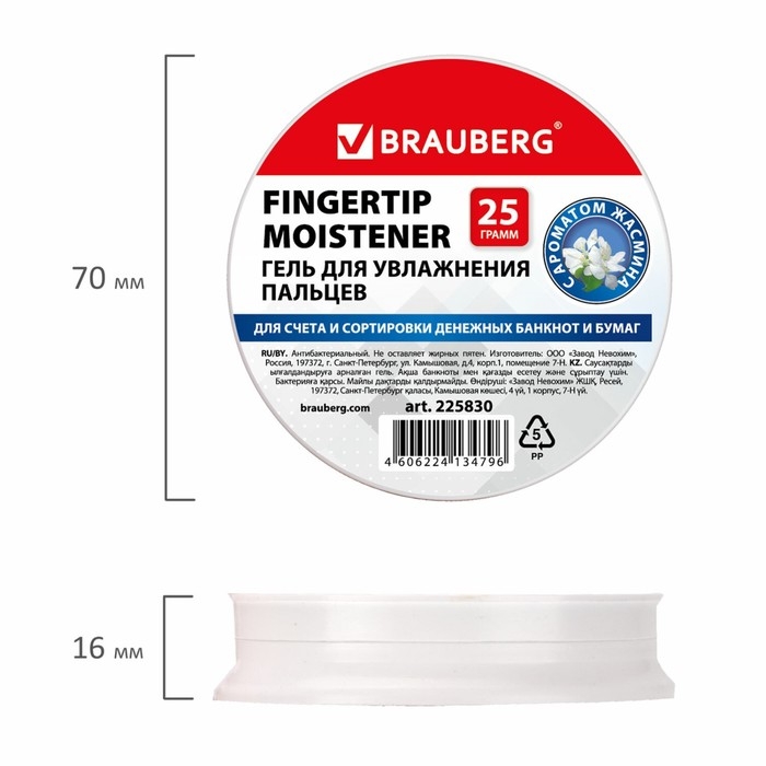 Гель для увлажнения пальцев BRAUBERG облегчает работу при подсчете денег, перелистывании документов, бюллетеней, подписных листов и т.д.