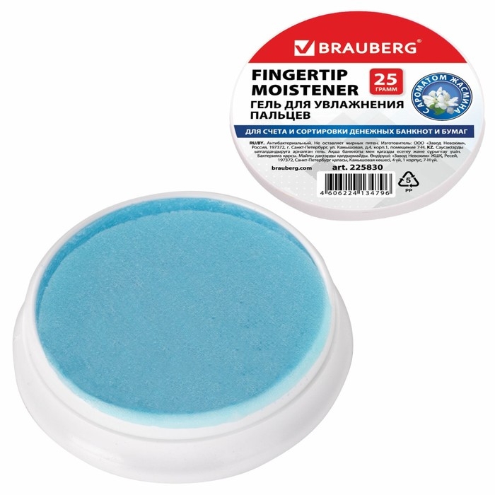 Гелевый увлажнитель для пальцев 25г BRAUBERG, c ароматом жасмина, голубой