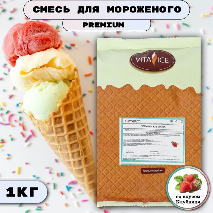 Сухая смесь для мягкого мороженого «Вита-Айс премиум» клубничная, 1 кг