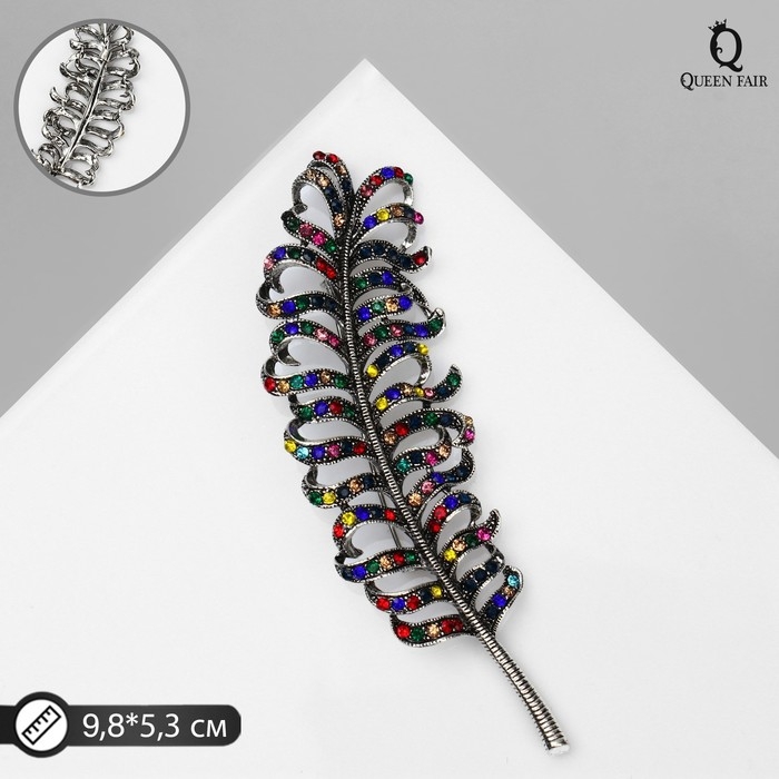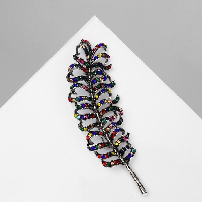 Брошь «Перо», цветная в чернёном серебре