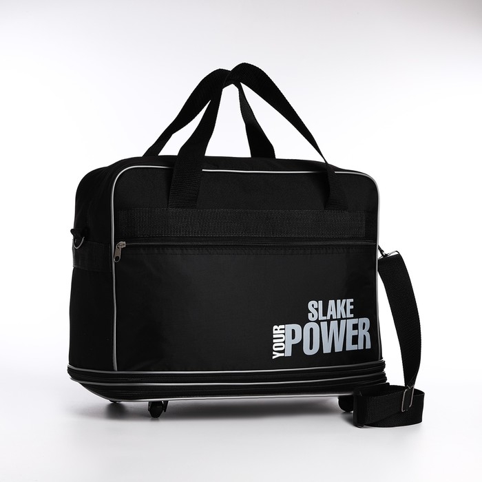 Сумка дорожная 20" на колёсах, отдел на молнии, с увеличением, наружный карман, длинный ремень, цвет чёрный