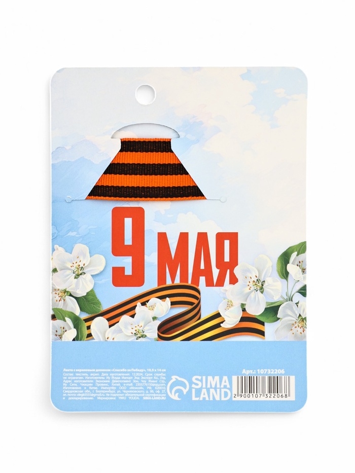 Значок с георгиевской лентой на 9 Мая «Спасибо за победу», 10.5×14 см