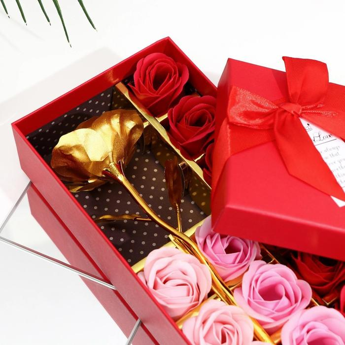Букет из мыльных лепестков "Роза подарочная в коробке" красный 8,6х8,6х18,5 см