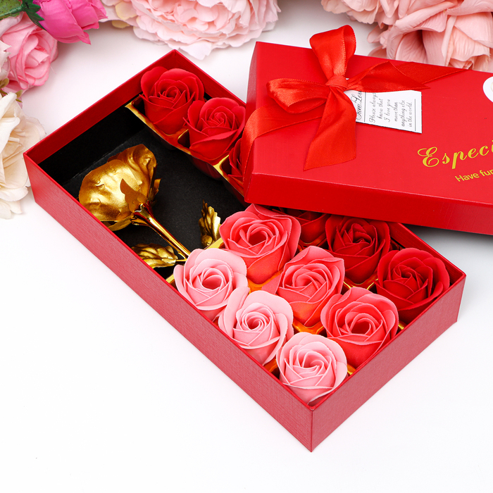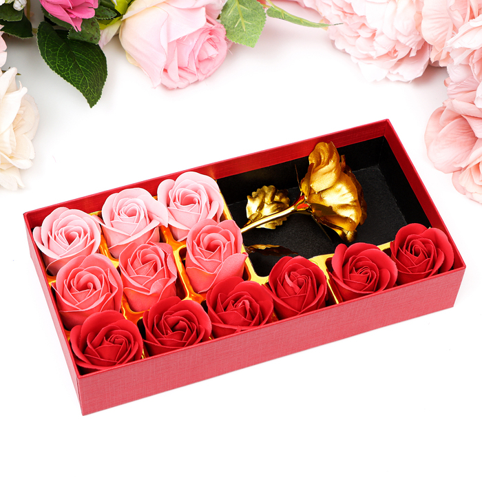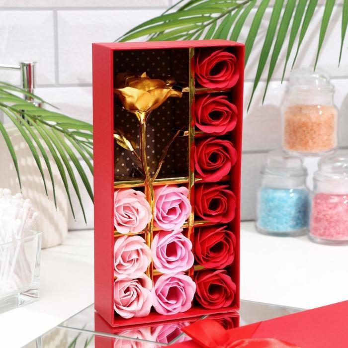 Мыльные розочки цветных оттенков и золотая роза, набор