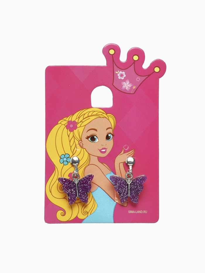 Серьги клипсы детские Выбражулька «Блеск бабочки», фиолетовые