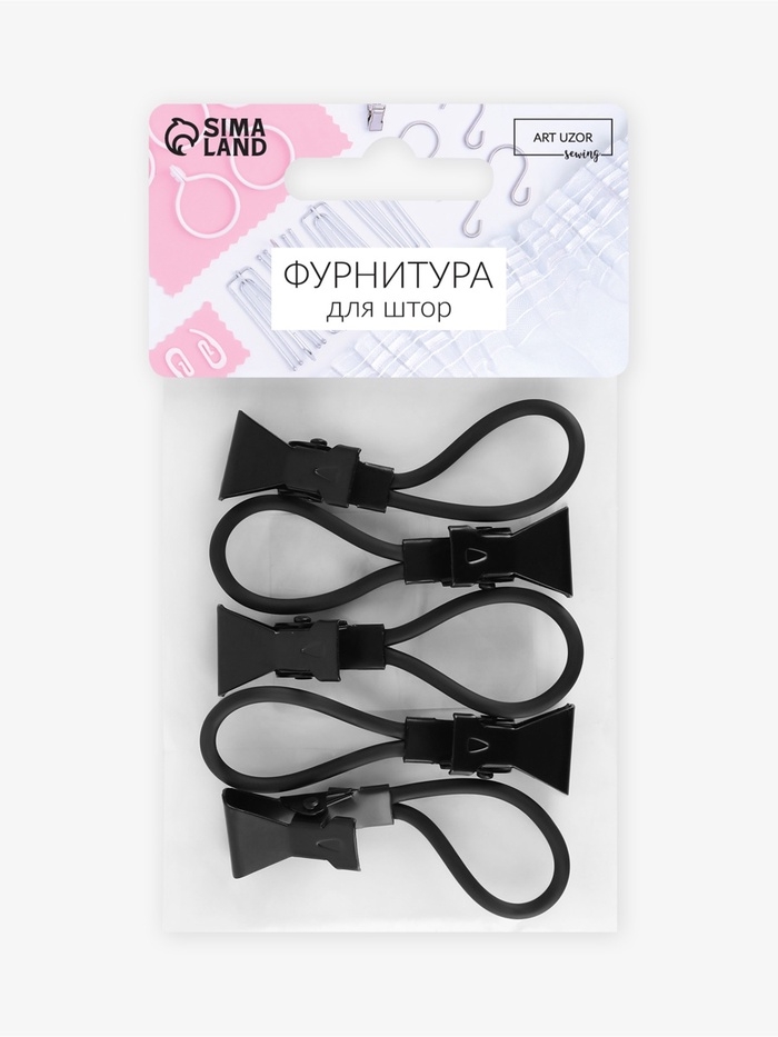 Зажим для штор на петле, металлический, 5.5×1.5 см, 5 шт., чёрный