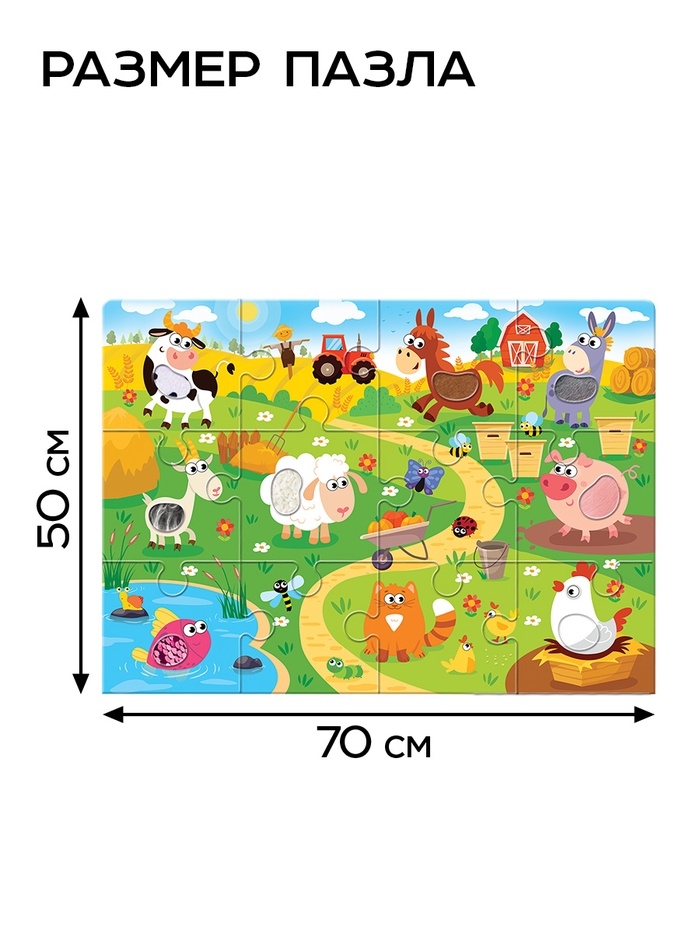 Пазл напольный с тактильными вставками "Весёлая ферма"
