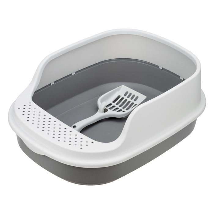 Лоток для кошек Ля-Мурр 48×35,5 см с высоким бортом + совок Soft-touch, смоки