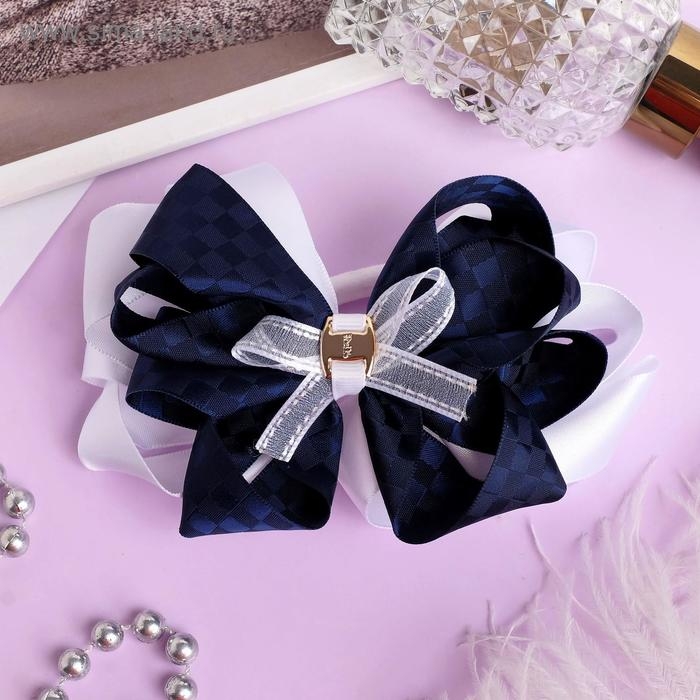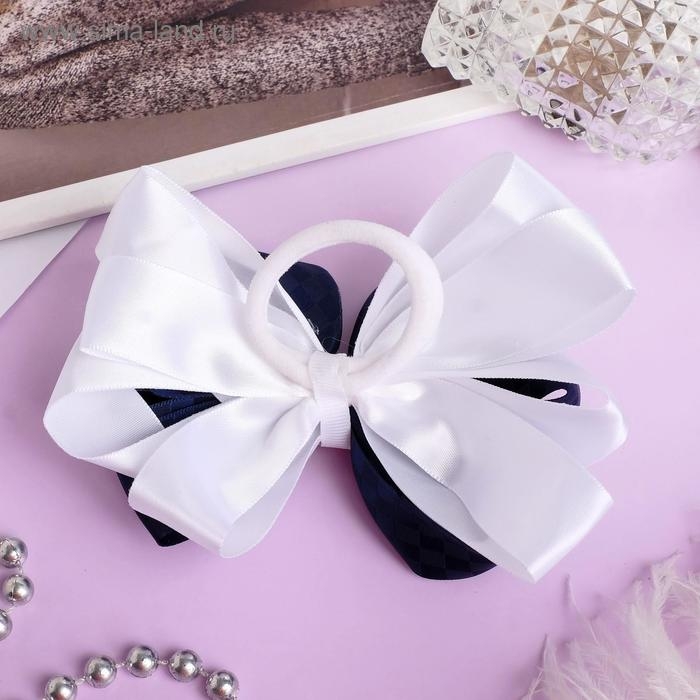 Резинка для волос "Школьница" бант клеточка, 13 см, бело-синий