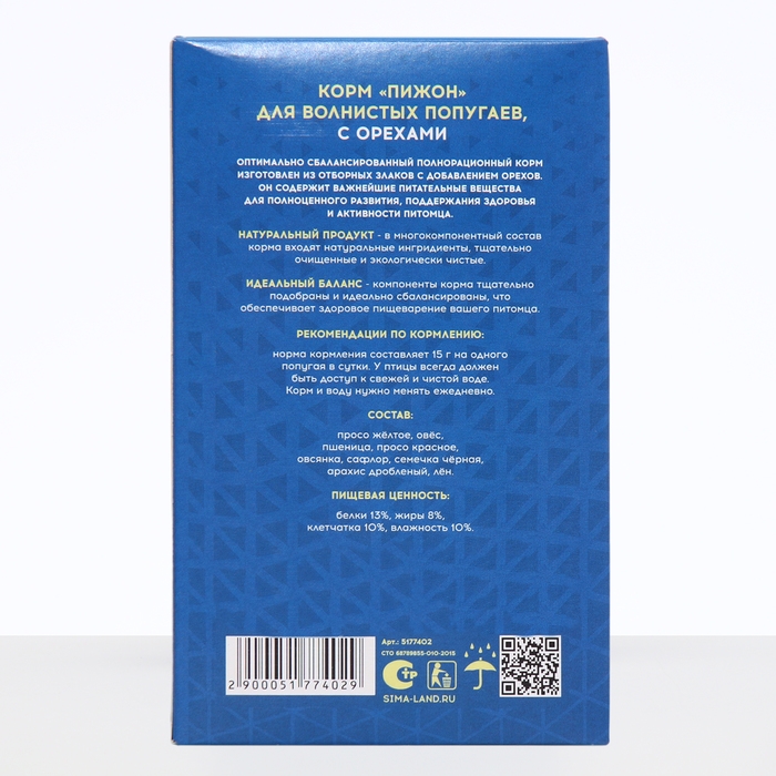 Корм "Пижон" для волнистых попугаев - оптимально сбалансированный полнорационный корм