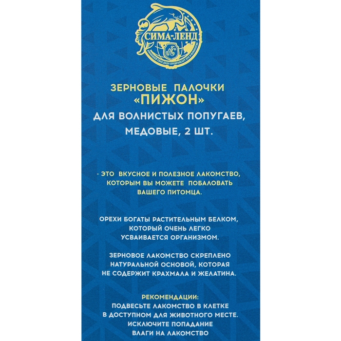 Зерновые палочки "Пижон" для птиц, медовые - это вкусное и полезное лакомство, которым вы можете побаловать вашего питомца.