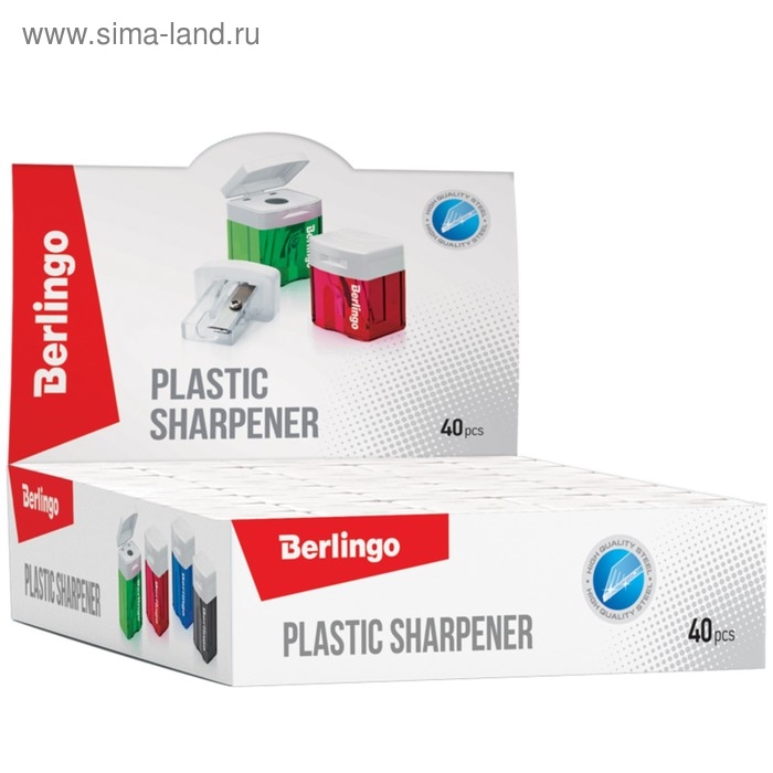 Тонированный полупрозрачный контейнер. Материал корпуса - пластик. Позволяет легко и аккуратно производить заточку карандашей стандартного диаметра до 8 мм. Лезвия изготовлены из высококачественной стали для безупречной заточки карандашей. Цветовая гамма: красный, зелёный, синий, чёрный. Упаковка - ассорти в картонный дисплей по 40 шт.