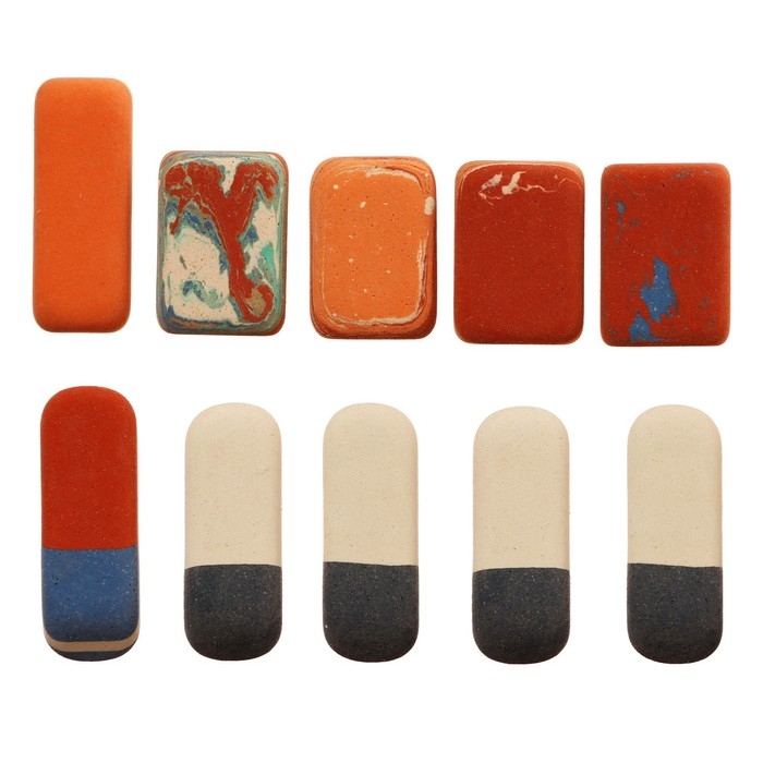 Овальные ластики разных видов и цветов, пригодны для удаления следов графитовых карандашей.