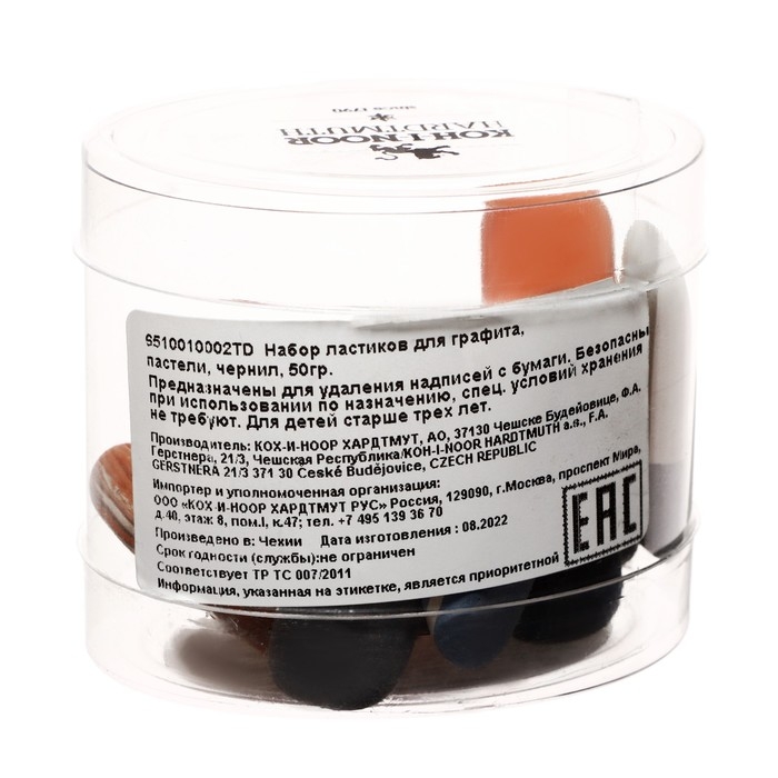 Набор ластиков для графита, пастели, чернил 50гр Koh-i-Noor 6510, тубус