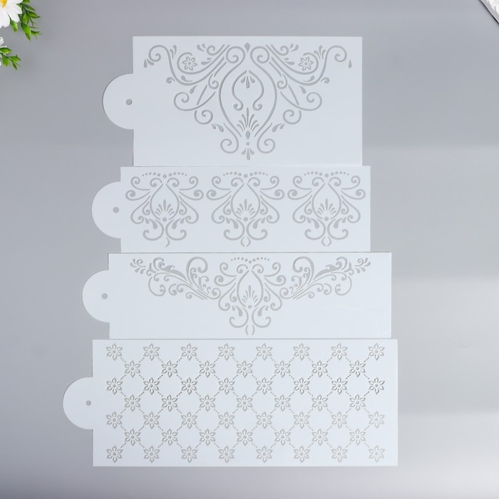 Трафарет пластик бордюрный "Витиеватые узоры" н-р 4 шт 14,9х29,2;10х31,7;10х35,4;15х37,9 см 670750