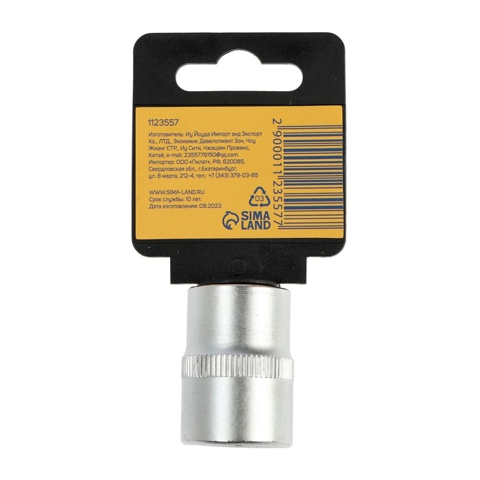Головка торцевая шестигранная удлиненная ТУНДРА, под квадрат 1/2", 10 мм, CrV