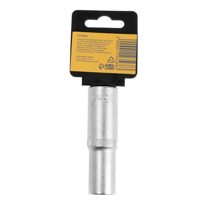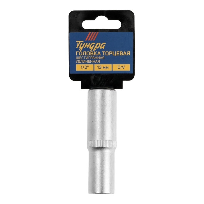 Головка торцевая шестигранная удлиненная ТУНДРА, под квадрат 1/2", 13 мм, CrV
