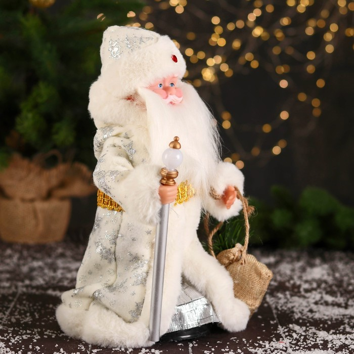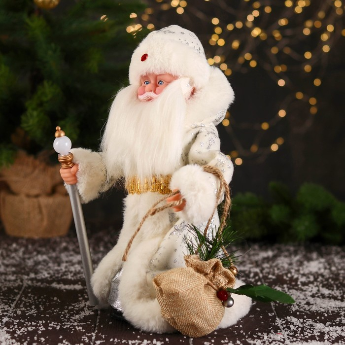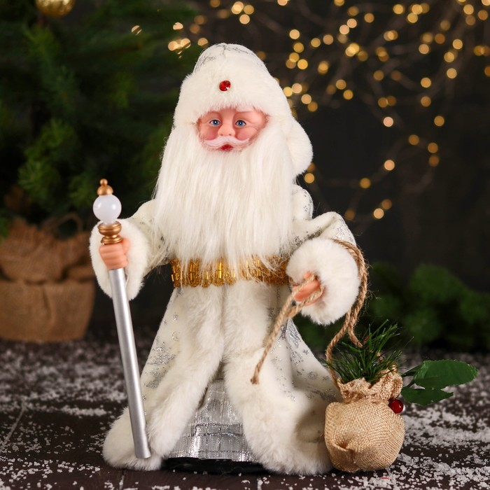 Дед Мороз "В белой шубке, с посохом и мешком" двигается, 12х28 см