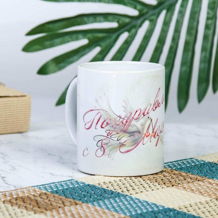 Кружка изготовлена из керамики. Рисунок нанесён методом сублимации, при котором краска проникает в верхний слой изделия, поэтому изображение получается стойким.