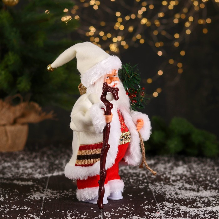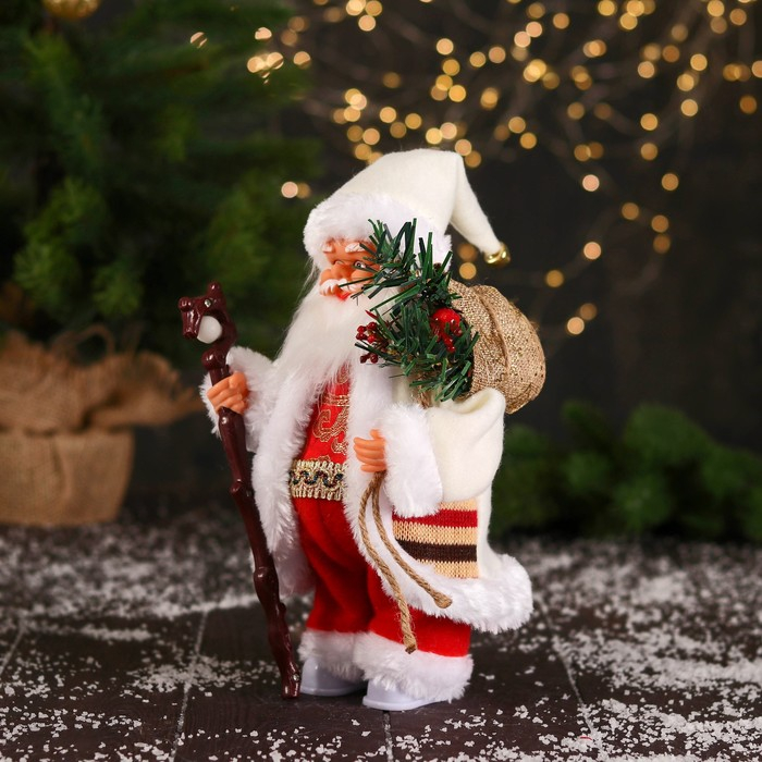 Дед Мороз "В костюмчике с орнаментом, с посохом" двигается, 25 см