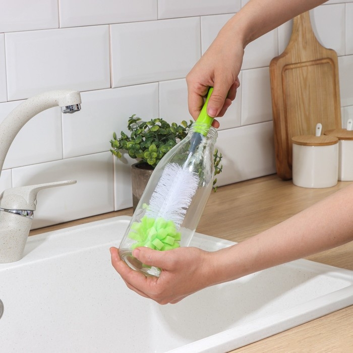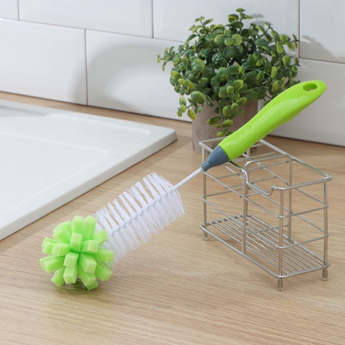 Ерш для посуды с губкой Доляна Green day, 31×5 см, анатомическая ручка