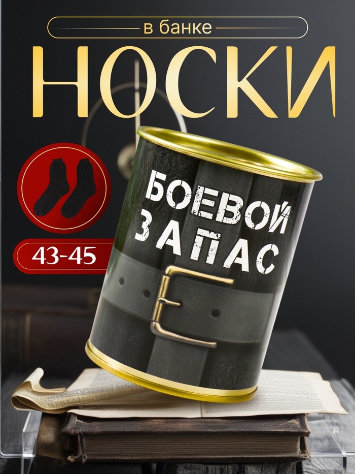 Подарочные носки в банке «Боевой запас», (внутри носки мужские, цвет чёрный)