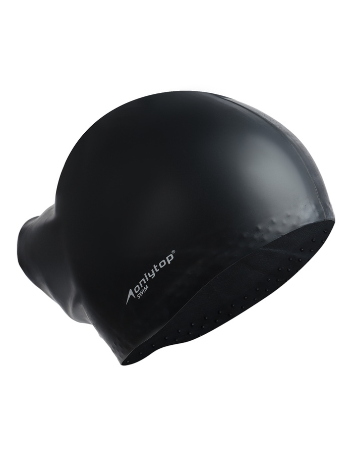 Шапочка для плавания силиконовая для длинных волос, цвет черный