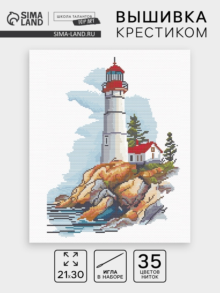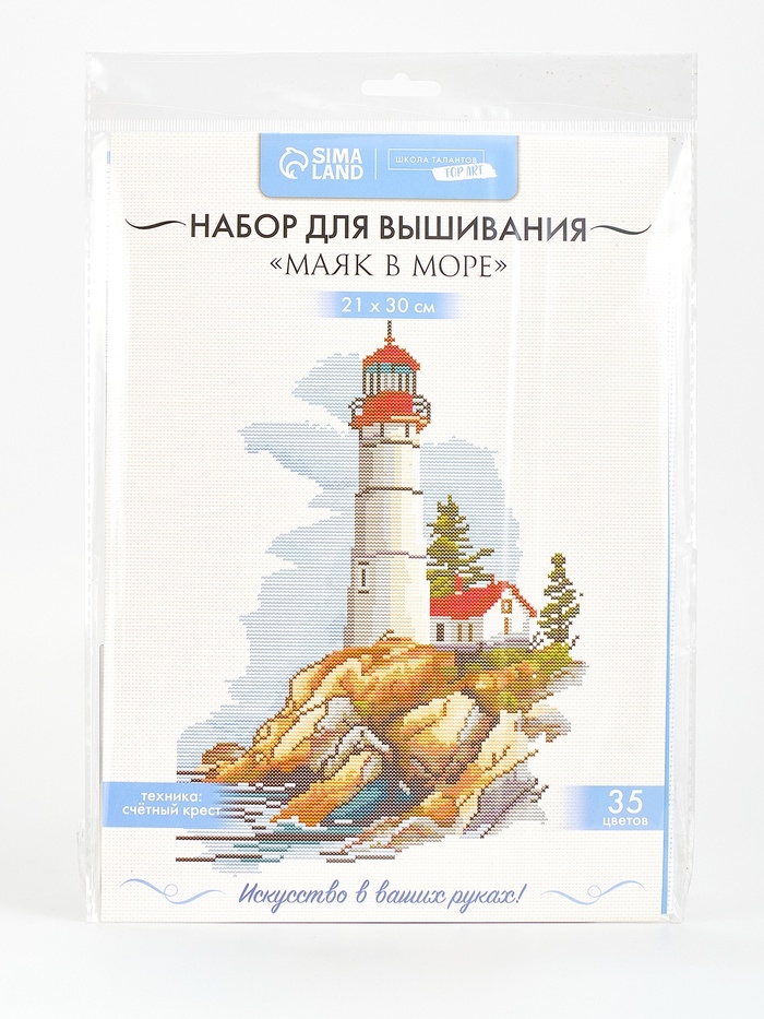 Вышивка крестиком 21х30 см "Маяк в море"