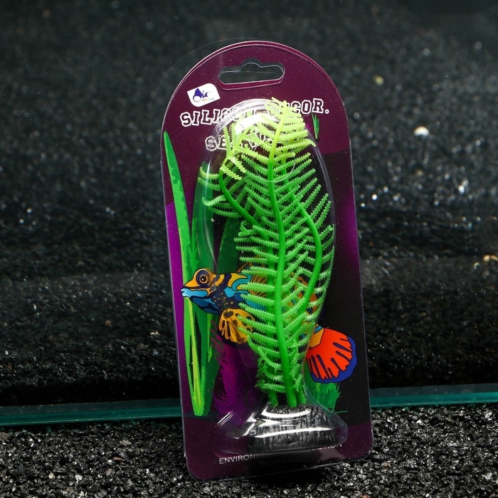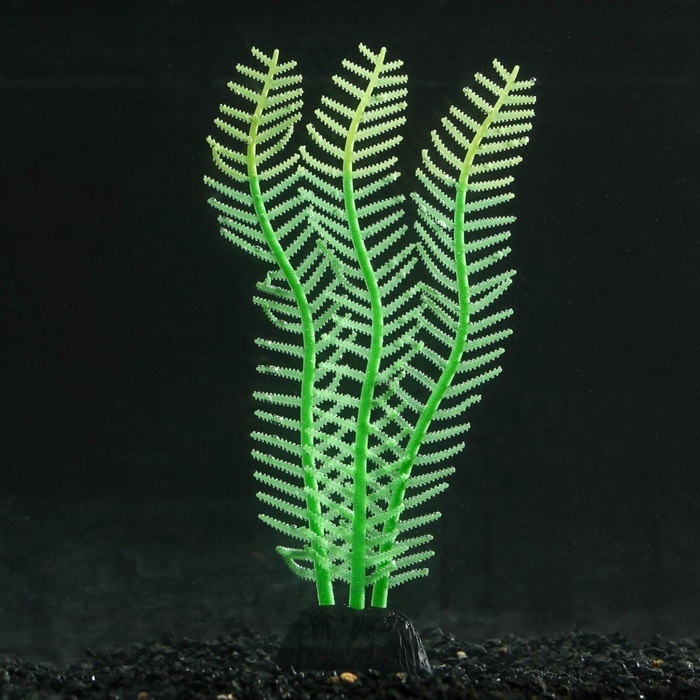 Растение искусственное аквариумное, светящееся, 10 см, зелёное