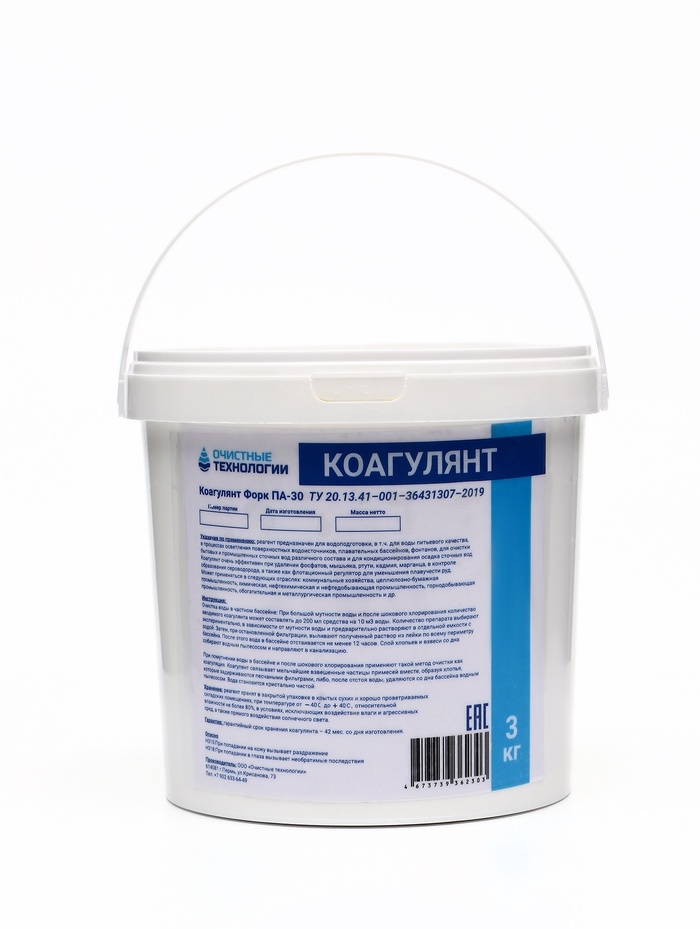 Средство для бассейна Коагулянт "Очистные технологии", порошок, ведро 3 кг