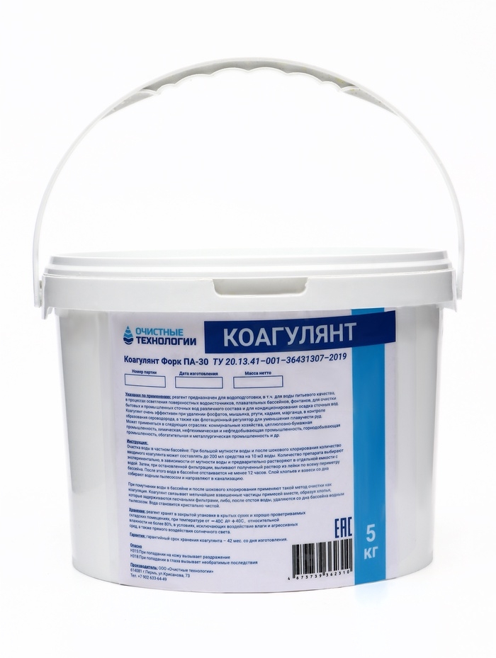 Средство для бассейна Коагулянт "Очистные технологии", порошок, ведро 5 кг