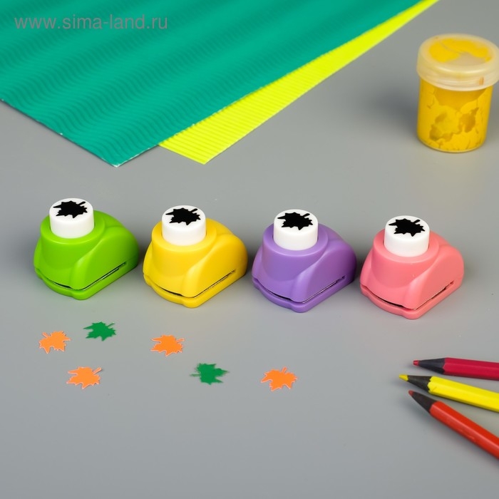 Дырокол фигурный d=1,5 см "Кленовый лист" МИКС 3,5х4х4 см