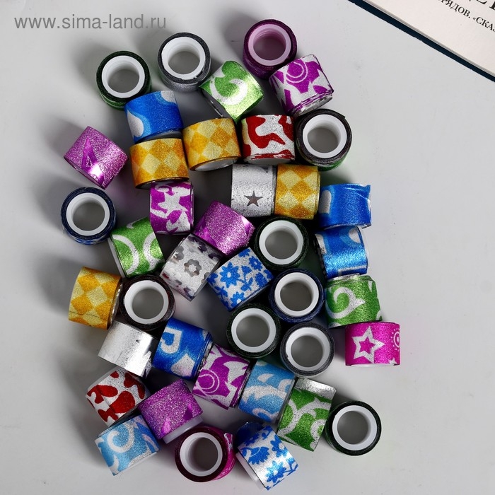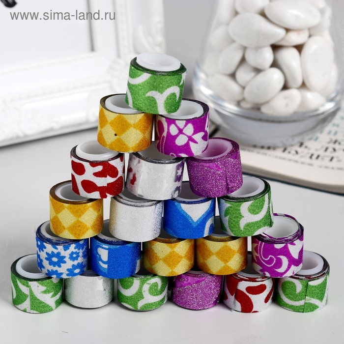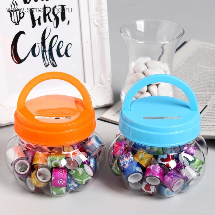 Клейкая лента пластик в банке "Блеск" (набор 40 шт) цвета МИКС 1,2 смх1 м 7,5х8,5х8,5 см