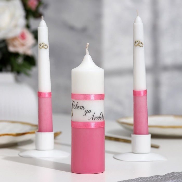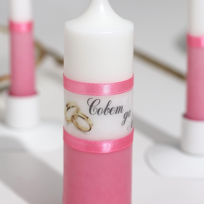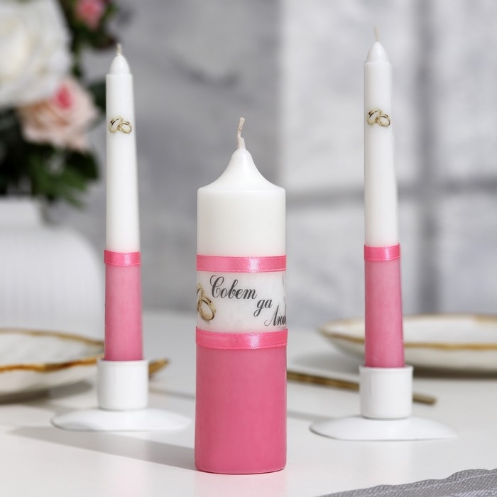 Набор свадебных свечей "Совет да любовь" розовый: родительские 1,8х17,5; очаг 4х13,5