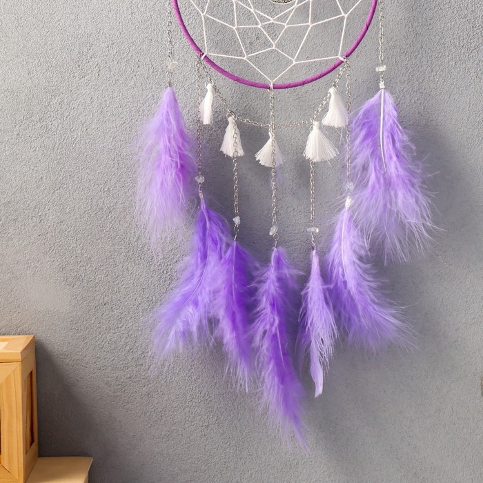Ловец снов "Кисточки с сиреневыми пёрышками" 40х15 см