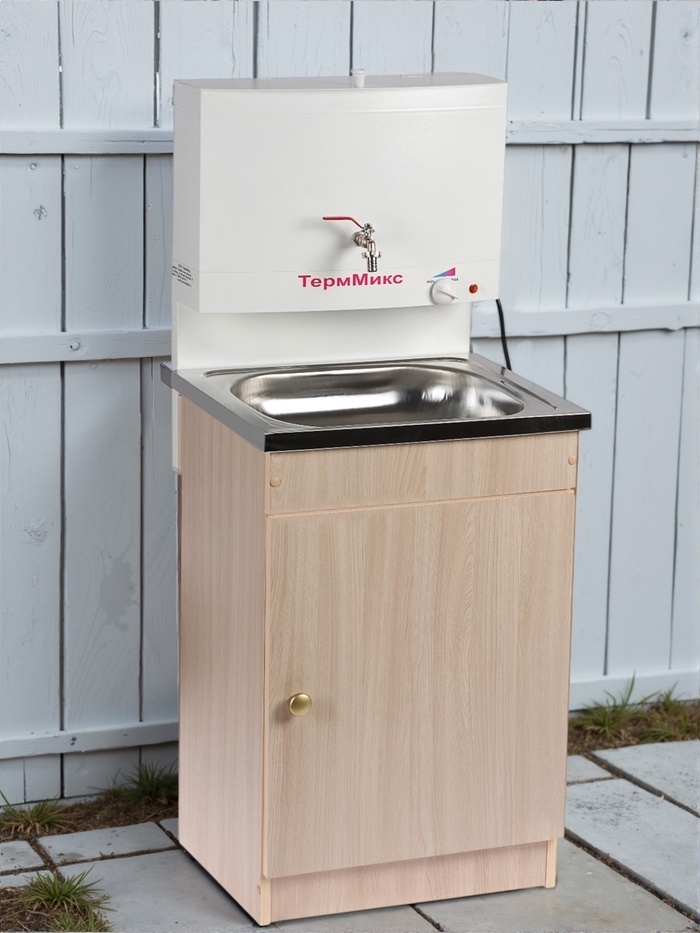 Умывальник "ТермМикс" предназначен для использования в местах без центрального водоснабжения. Мойка выполнена из нержавеющей стали. Объём бака 17 литров.