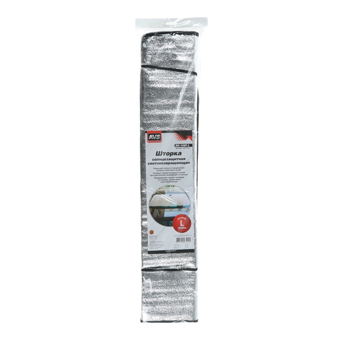 AVS SH-105F-L изготовлена из алюминиевой фольги, нанесенной на подложку из поролона. Штока имеет следующие габариты: 150x80 см. Данное изделие подойдет для установки практически на любое лобовое стекло автомобиля.